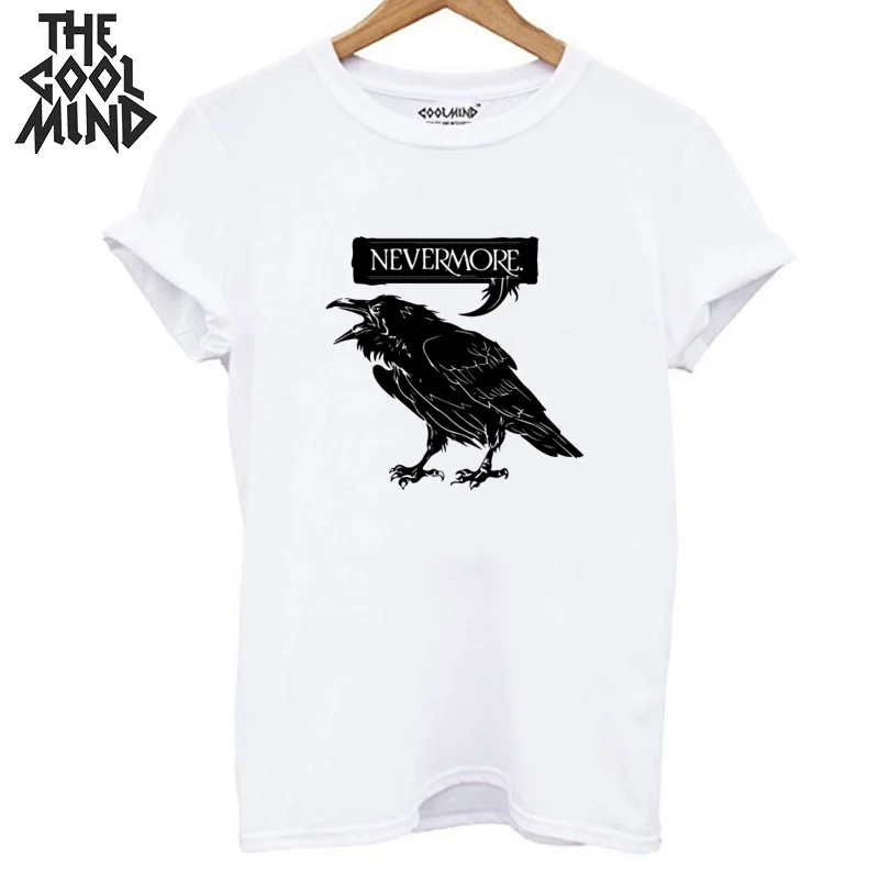 COOLMIND 100% хлопок летняя Свободная Женская футболка повседневная с коротким рукавом с принтом птицы женская футболка с круглым вырезом Футбол...