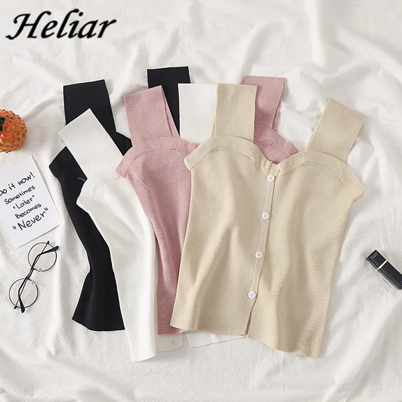 HELIAR/Женские топы в полоску, Трикотажный жилет, укороченный топ, сексуальный женский однотонный топ, женские майки 2020, летние топы на бретелях