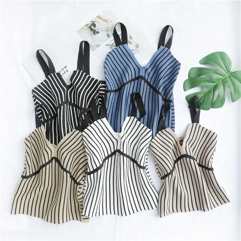 Сексуальная Женская вязаная майка с бретельками, универсальная повседневная короткая женская ночная кофта с v-образным вырезом, новый диза...
