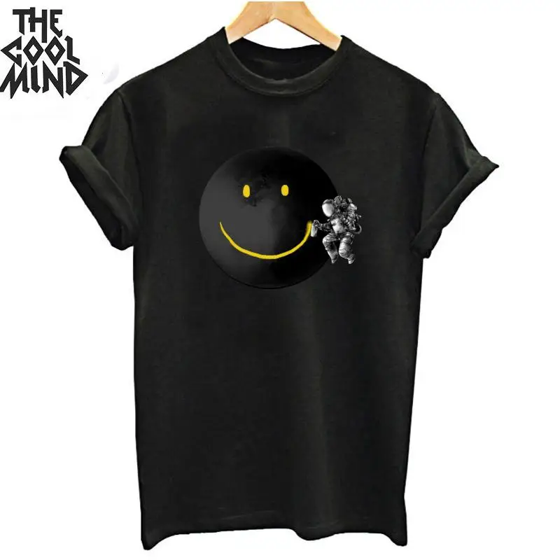 COOLMIND/Высококачественная Хлопковая женская футболка с крутым космическим принтом, милая Летняя женская футболка, свободная футболка с круг...