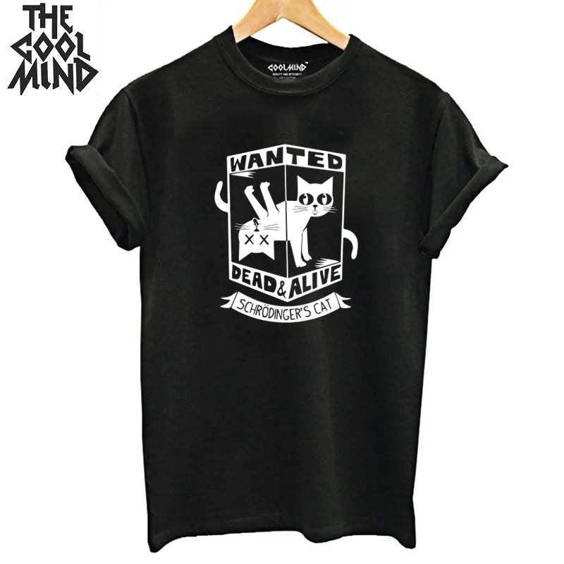 COOLMIND 100% хлопок с коротким рукавом Кот Шрёдингера женская футболка Повседневная летняя обувь свободные женские футболки o-образным вырезом ...