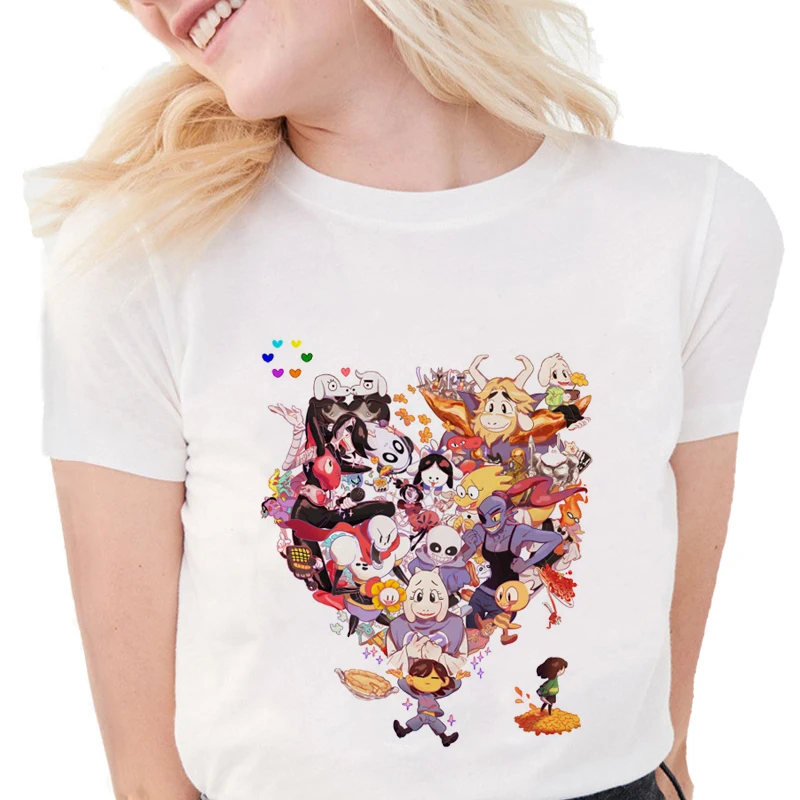 Новый летний Undertale аниме смешно печатных Для женщин Футболки короткий рукав Повседневное тонкий Для женщин белый Топы корректирующие Прохл...