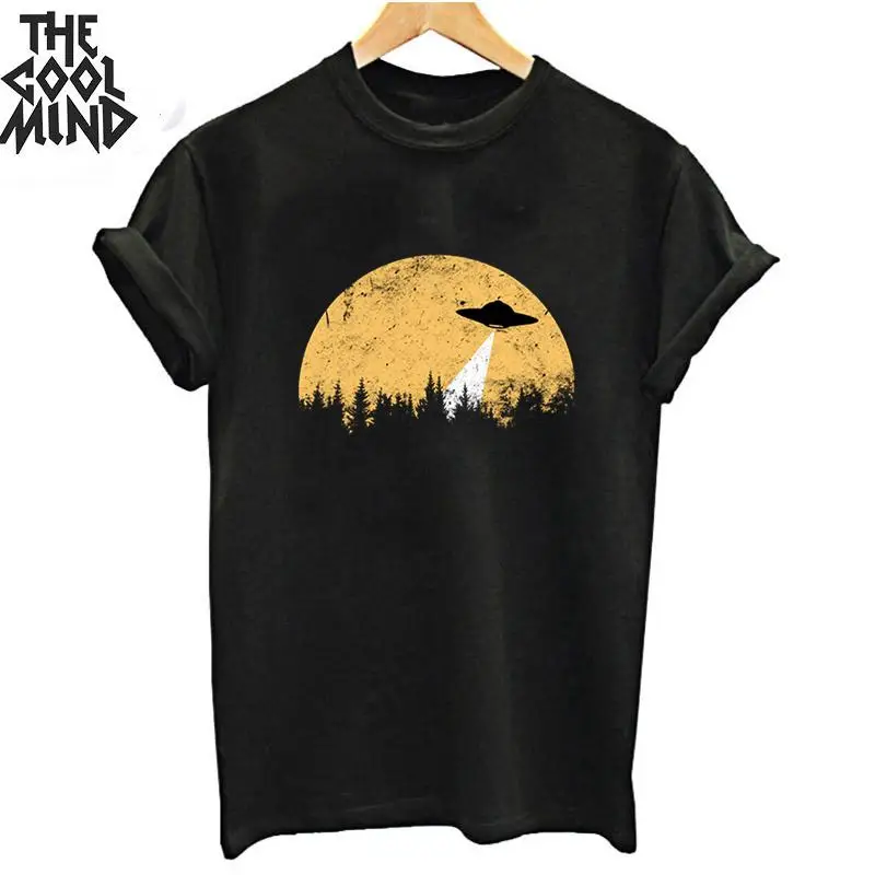 COOLMIND 100% хлопок женская футболка Повседневная Свободная Женская футболка короткий рукав космический Принт Женская футболка классная летня...