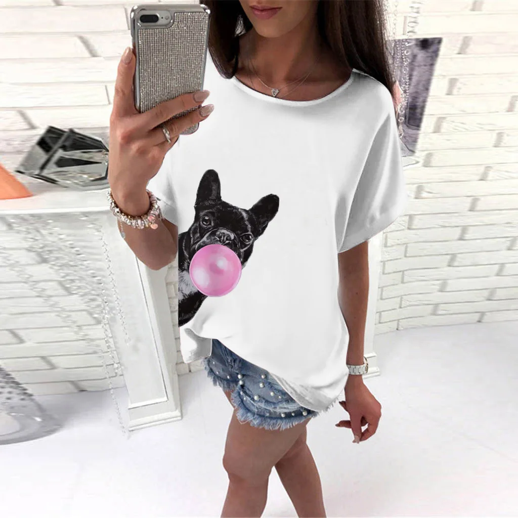 Футболка с принтом головы собаки, женская футболка с коротким рукавом и круглым вырезом, свободная забавная Милая футболка, летняя женская ...