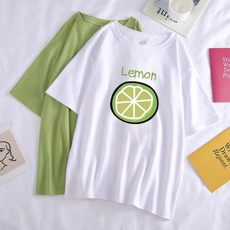 Женские футболки 2019 летние топы с короткими рукавами с принтом авокадо и лимона, Модные свободные рубашки харадзюку