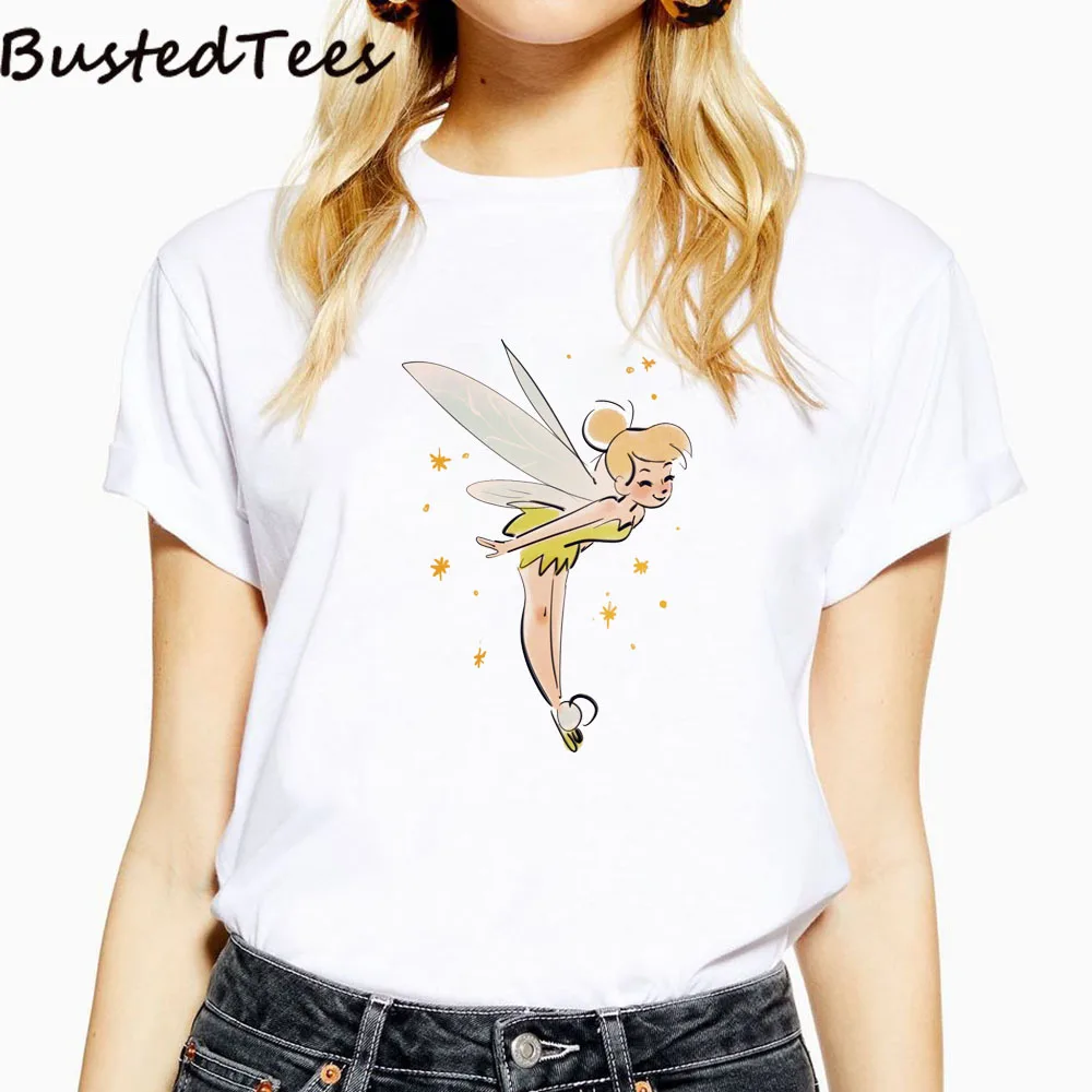 BUSTED 2019 90 s милые Женская мода короткий рукав футболки хлопок Мягкие Летние Kawaii Тинкер Белл печати повседневное топы футболки в стиле Харадзюку
