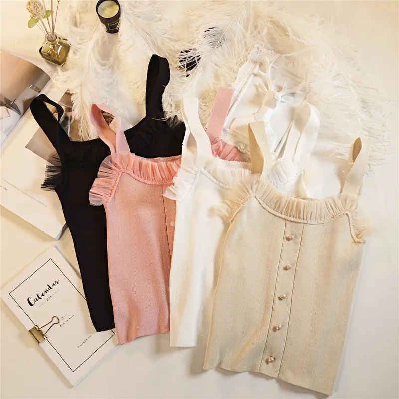 HELIAR, Одноцветный, на тонких бретельках, волан, подол, лето 2020, для девушек, на пуговицах, без рукавов, сексуальный, тонкий, женский, без бретелек, тонна для женщин