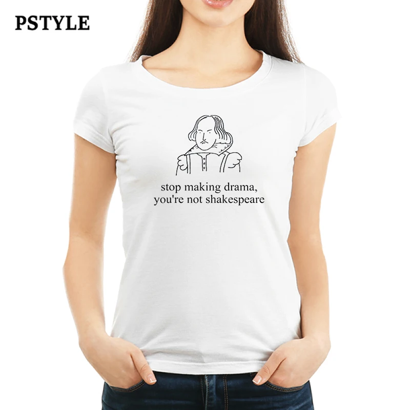 Забавная женская футболка с надписью «Stop Making Drama You't Shakespeare», повседневная с буквенным принтом, модная футболка с короткими рукавами в стиле ...
