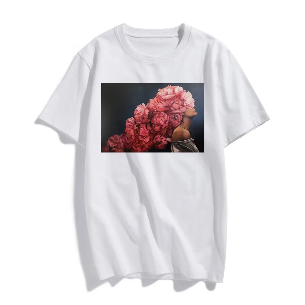 Новая хлопковая модная футболка сексуальная женская розовая Цветочная Harajuku Современная эстетика художественный принт короткий рукав футб...