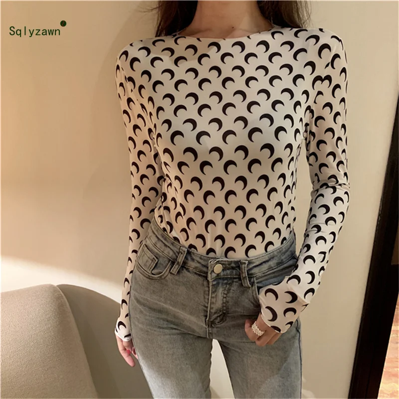 Женские футболки с длинными рукавами в Корейском стиле с принтом; сезон весна-лето; уличная одежда с круглым вырезом; футболки в японском ст...