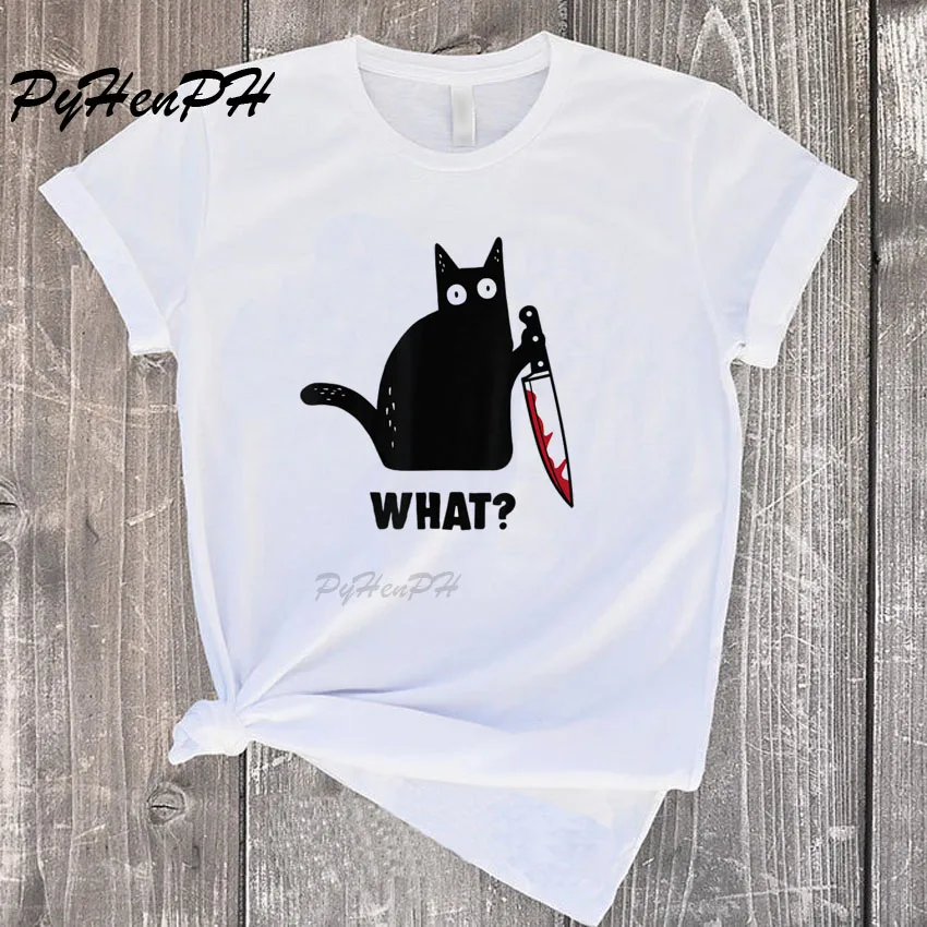 Летняя Стильная черная футболка с ножом, женская футболка с круглым вырезом и коротким рукавом, футболка с надписью «What», женская одежда Tumblr...