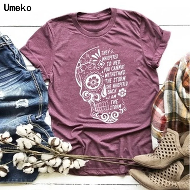 Umeko, шикарная футболка с принтом черепа, новая женская модная повседневная футболка с короткими рукавами для девочек, Забавные футболки с круглым вырезом, короткий топ размера плюс