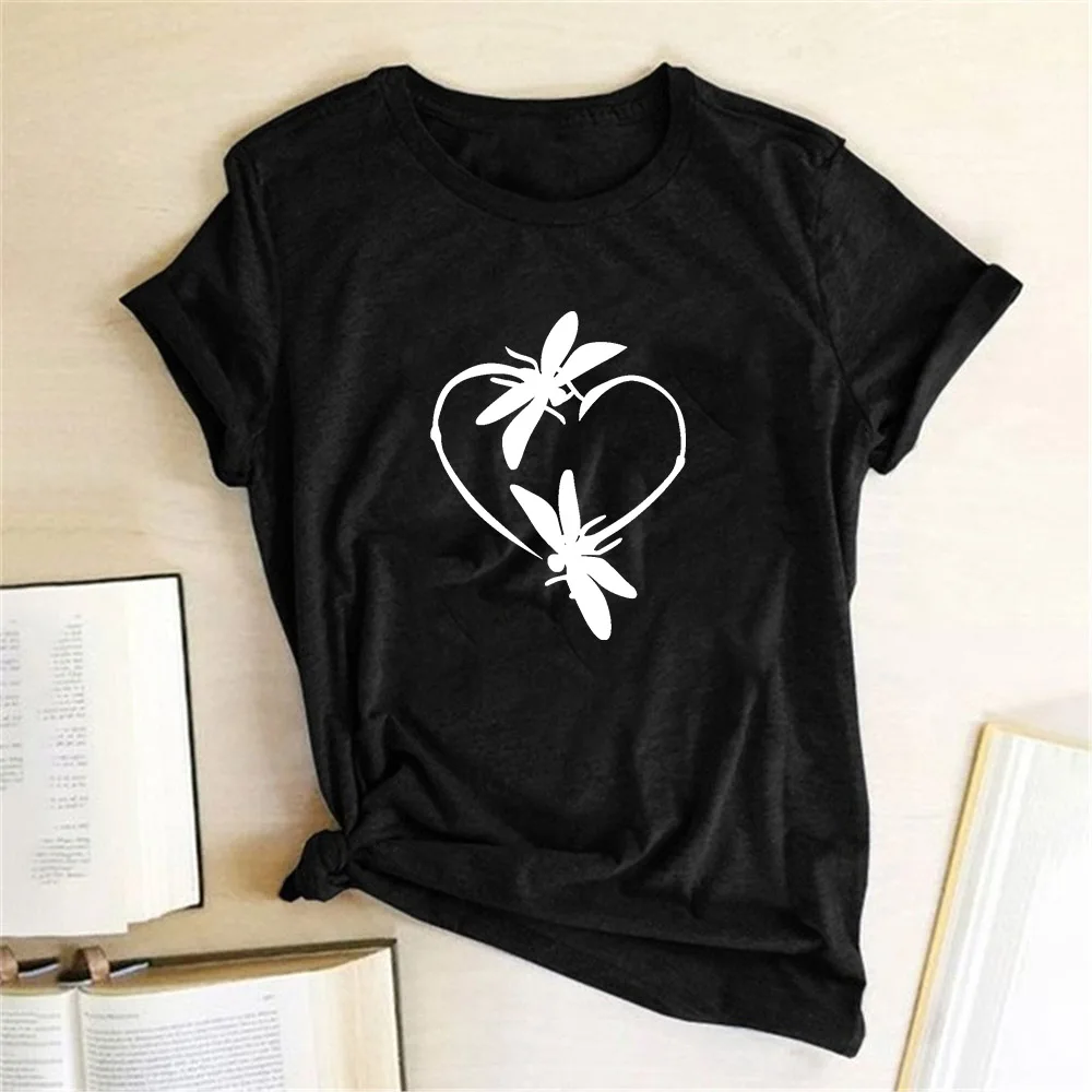 С принтом «сердце», «Любовь с принтом "Стрекоза" Для женщин футболка короткий рукав Повседневное милый комплект из футболки с изображением эстетическое Графический топы, футболки Femme на подарок для девочки