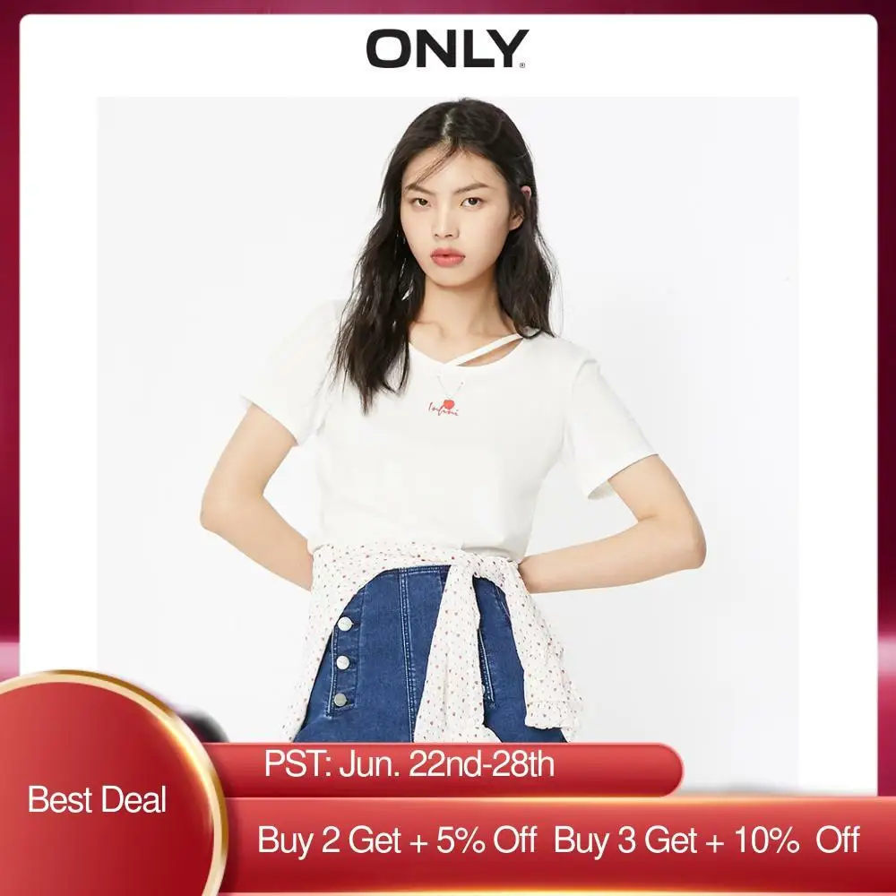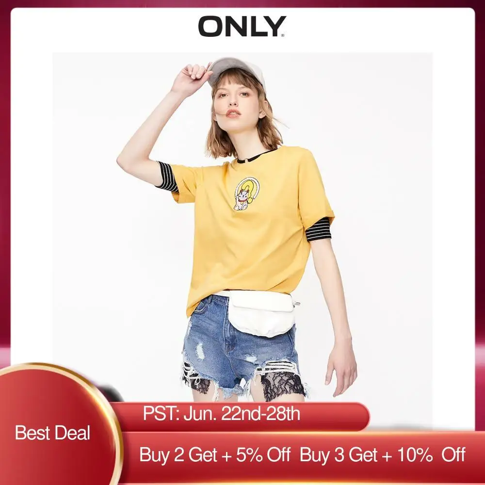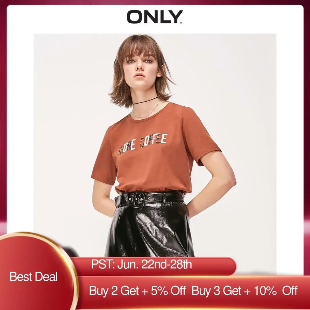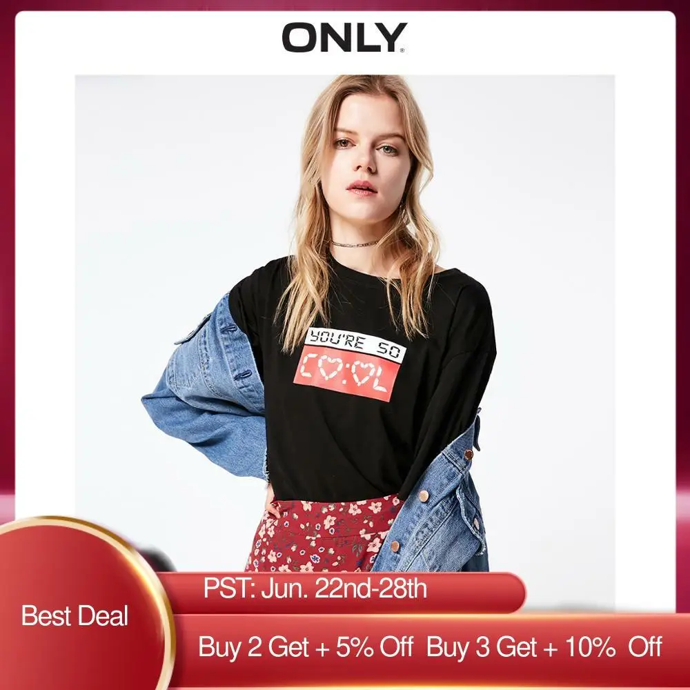 Только Женская свободная футболка с круглым вырезом и буквенным принтом с короткими рукавами | 119101515