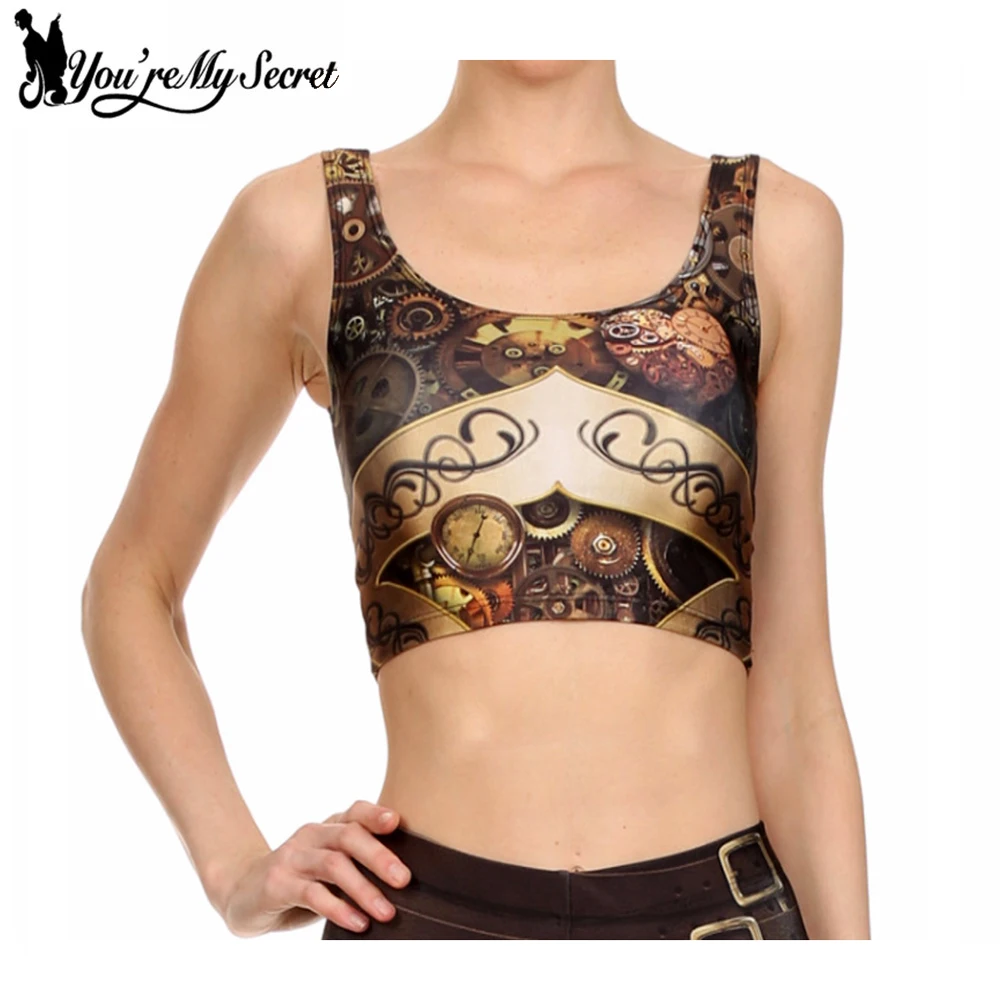 [You're My Secret] Новый стимпанк 3D цифровой печати женщина укороченный топ сексуальный фитнес топы без рукавов механические шестерни для женщин Т...