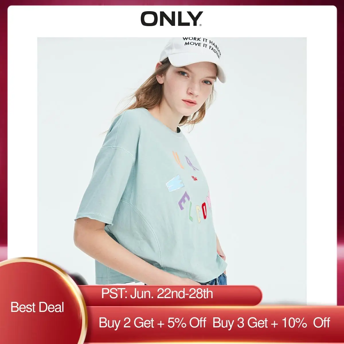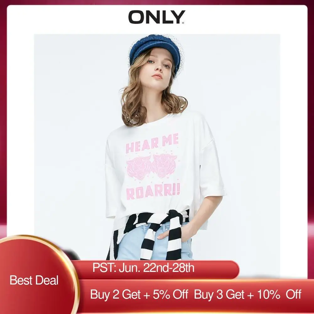 Только Женская свободная футболка из 100% хлопка с буквенным принтом | 119101512