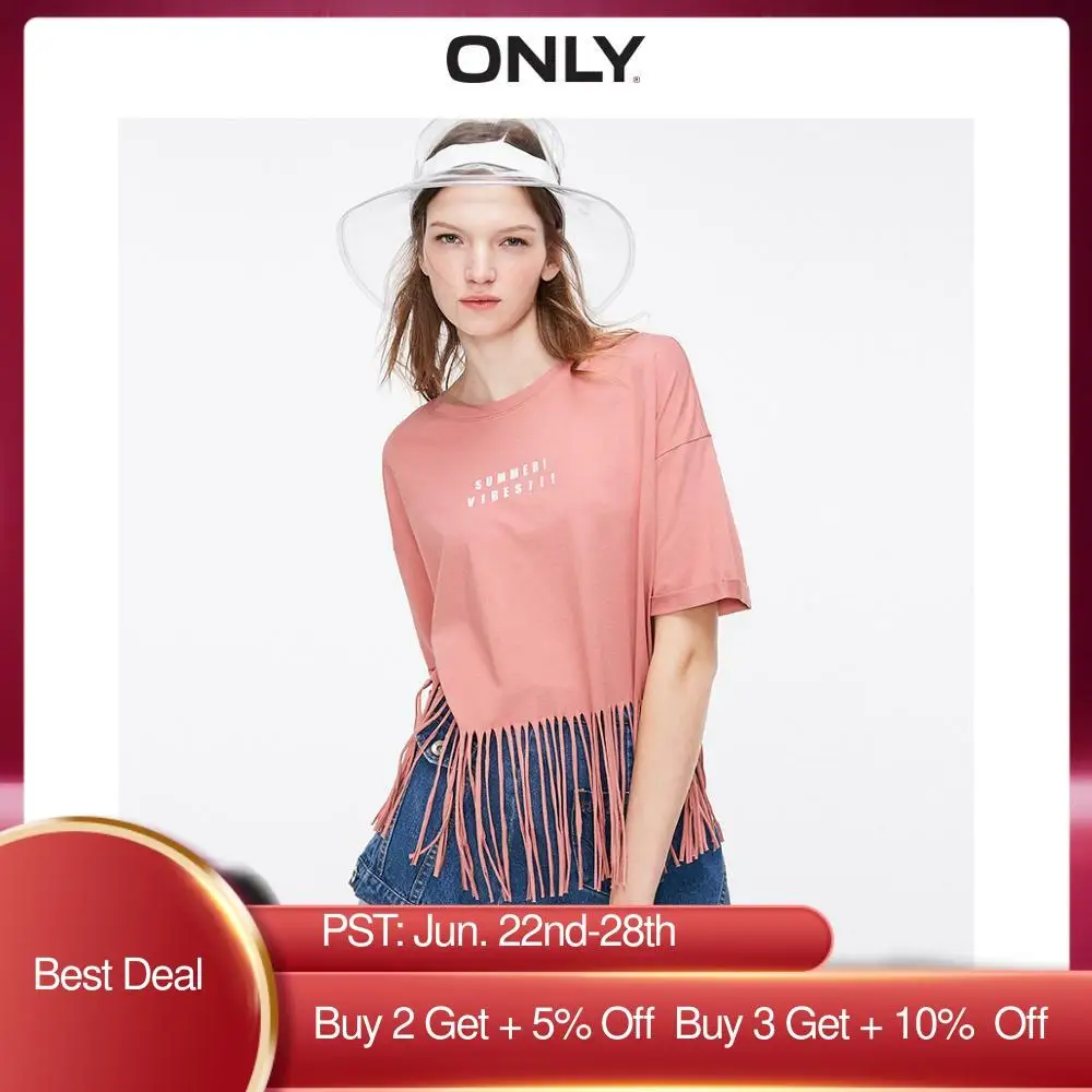 Только Женская свободная футболка с бахромой и буквенным принтом, рукава до локтя, Модальная ФУТБОЛКА | 119201521