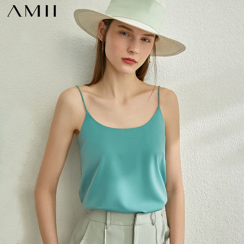AMII минимализм весна лето новый жилет для женщин повседневный однотонный короткий топ с v-образным вырезом женский топ на бретелях 12030186