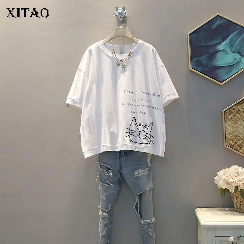 XITAO/футболка с вышитыми буквами; Модная новинка; Пуловер с короткими рукавами; Коллекция 2020 года; Сезон весна; Плиссированная футболка в стиле миноритарного стиля; DMY4085