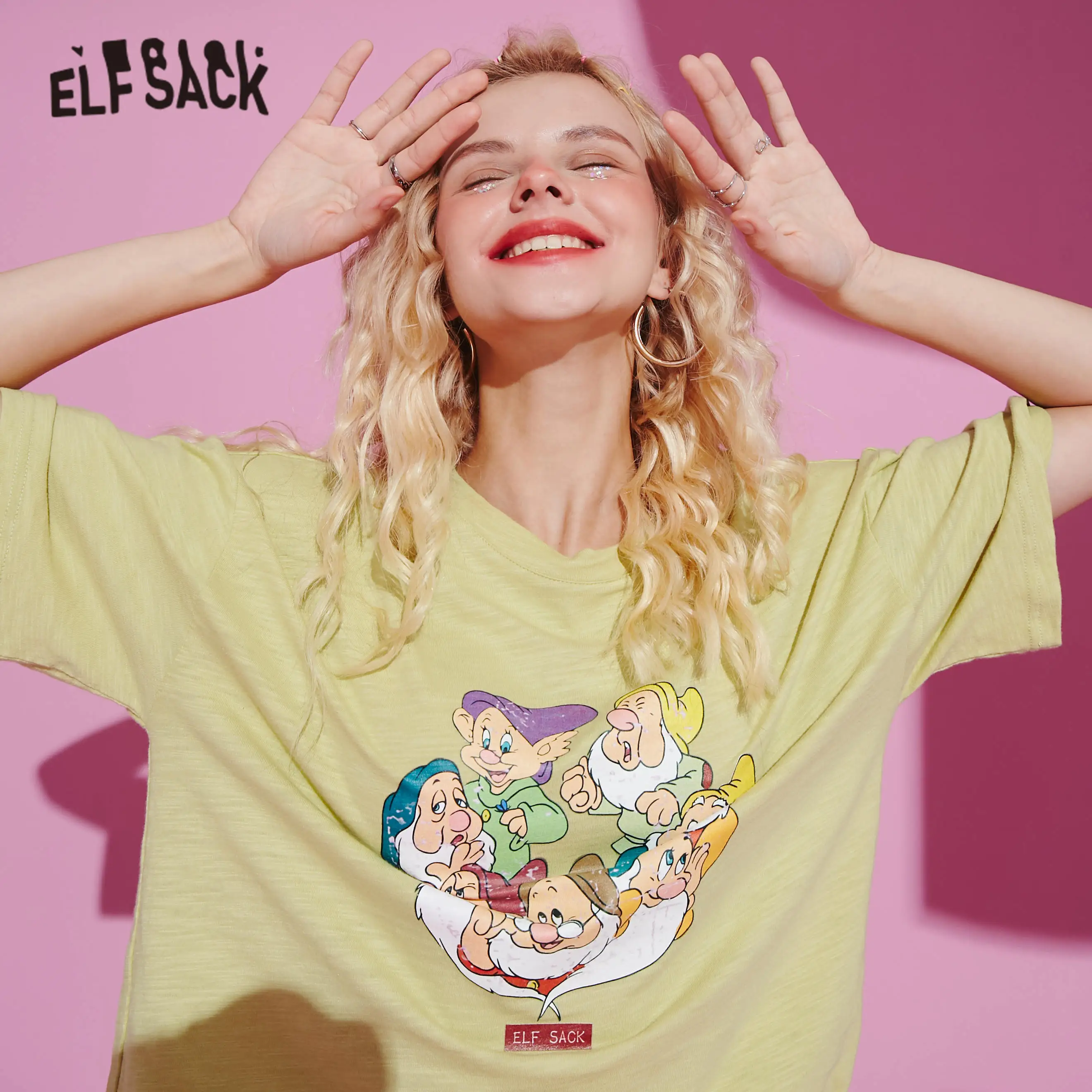 Elfsack зеленый с принтом Повседневное Для женщин Harajuku футболки 2020 летние бело-серые красные корейский стиль короткий рукав женские повседневные топы