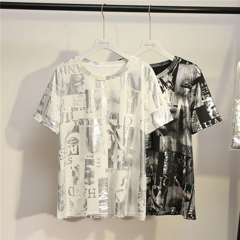 Футболка большого размера Для женщин Белый Принт Толстовка Harajuku футболка плюс Размеры BF уличная футболка Femme О-образным вырезом летние 2019 Д...