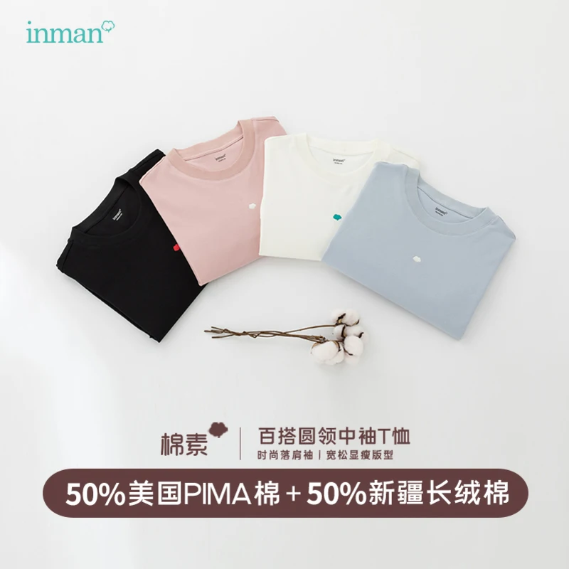 INMAN, хлопковая серия, весна 2020, Новое поступление, высокое качество, хлопок, Круглый ворот, свободный стиль, футболка