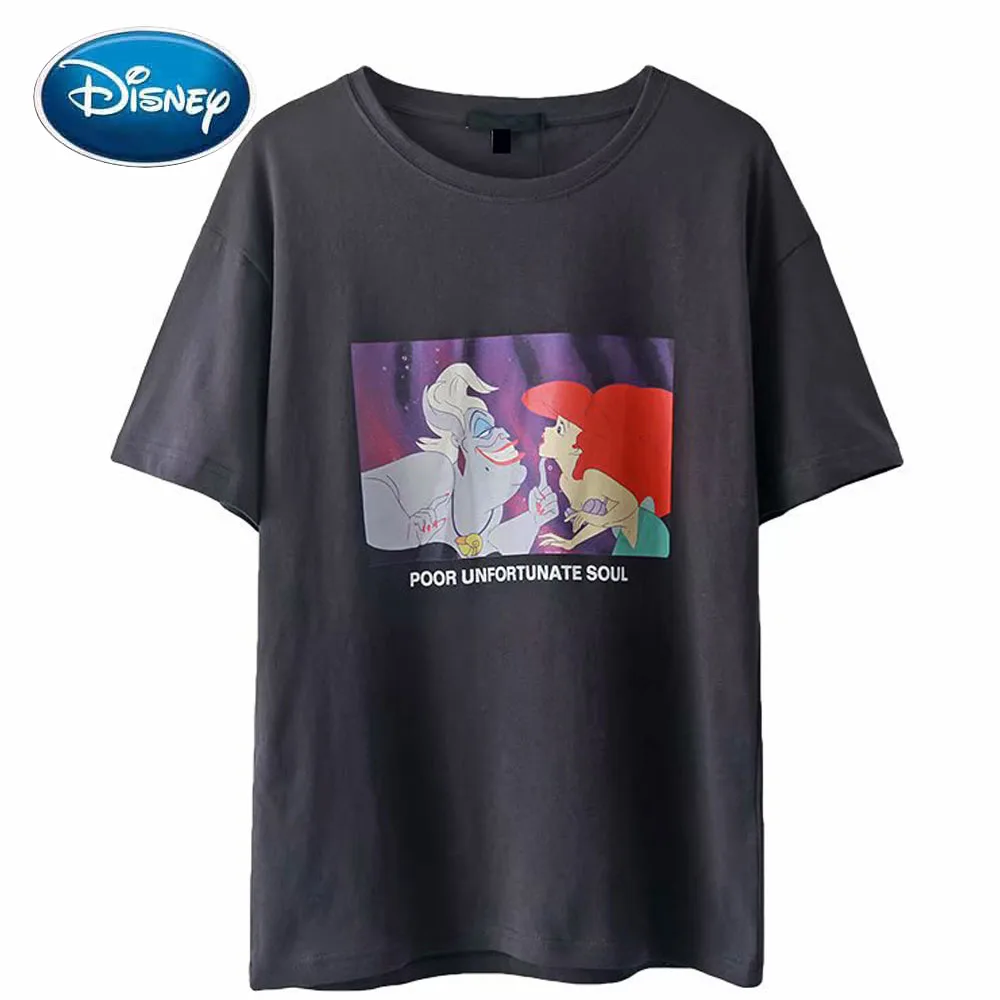 Женская футболка с коротким рукавом, хлопковая Футболка с принтом в виде Русалочки Ариэля и краба