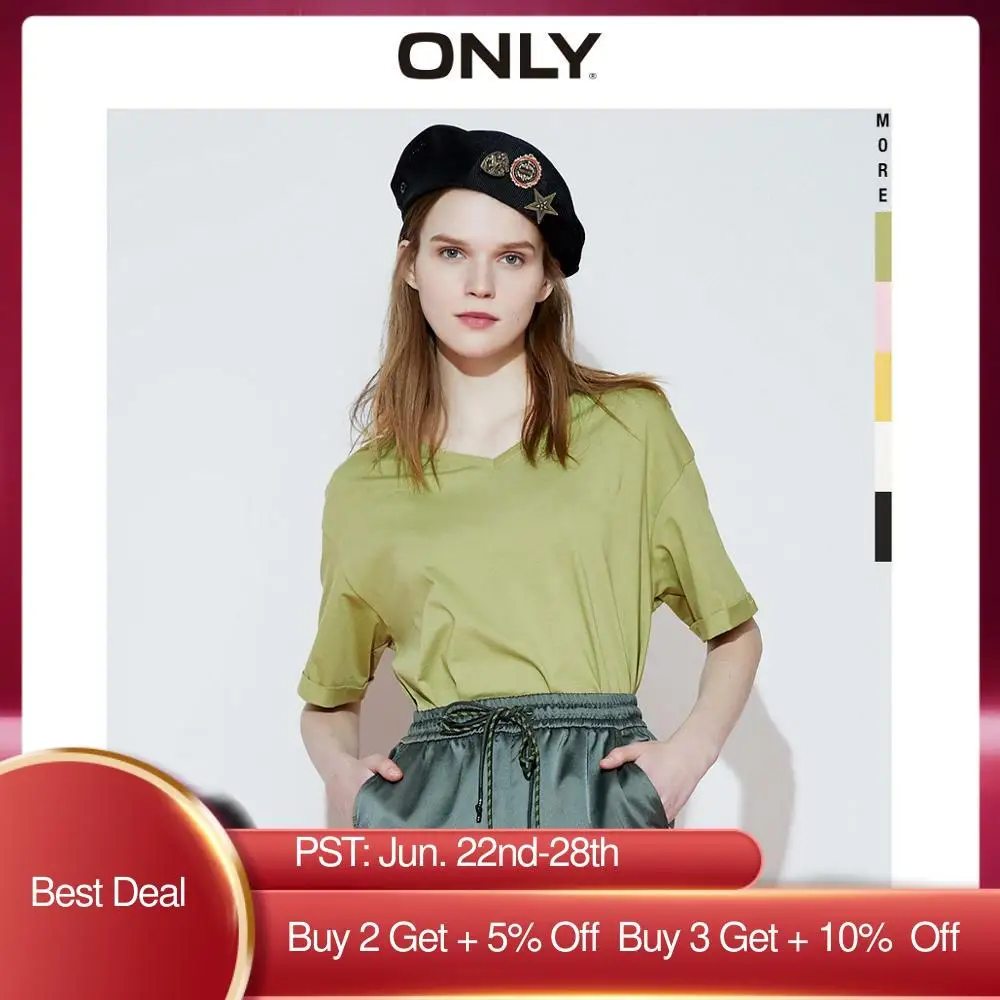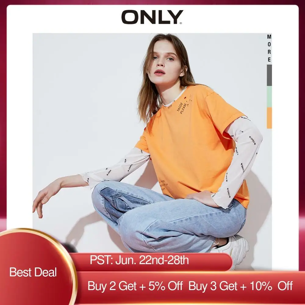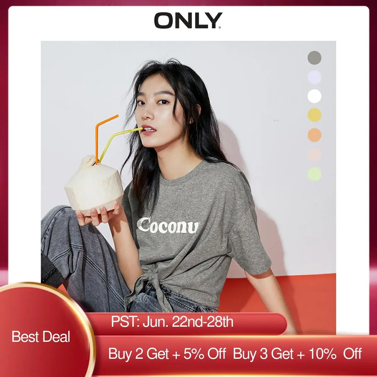 Только женская футболка с короткими рукавами из 100% хлопка с буквенным принтом и круглым вырезом | 120101645