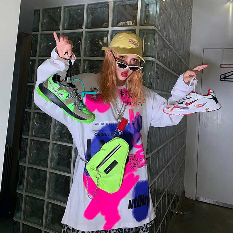 Женская футболка с длинными рукавами NiceMix, весенне-осенняя Футболка свободного кроя с принтом «хип-хоп граффити»