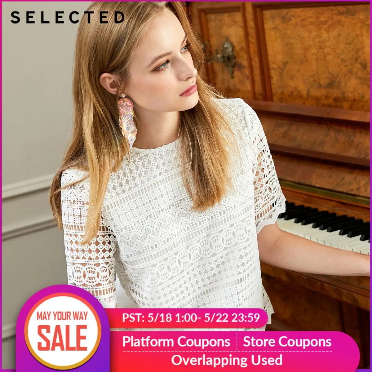 Избранные летние женские кружевные топы с короткими рукавами и вырезом S | 419241506