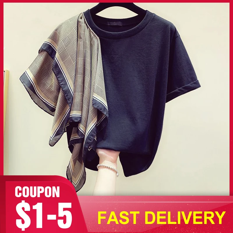 Летняя Корейская женская футболка с круглым вырезом, необычная декоративная рубашка с коротким рукавом, модные повседневные женские топы, 2020