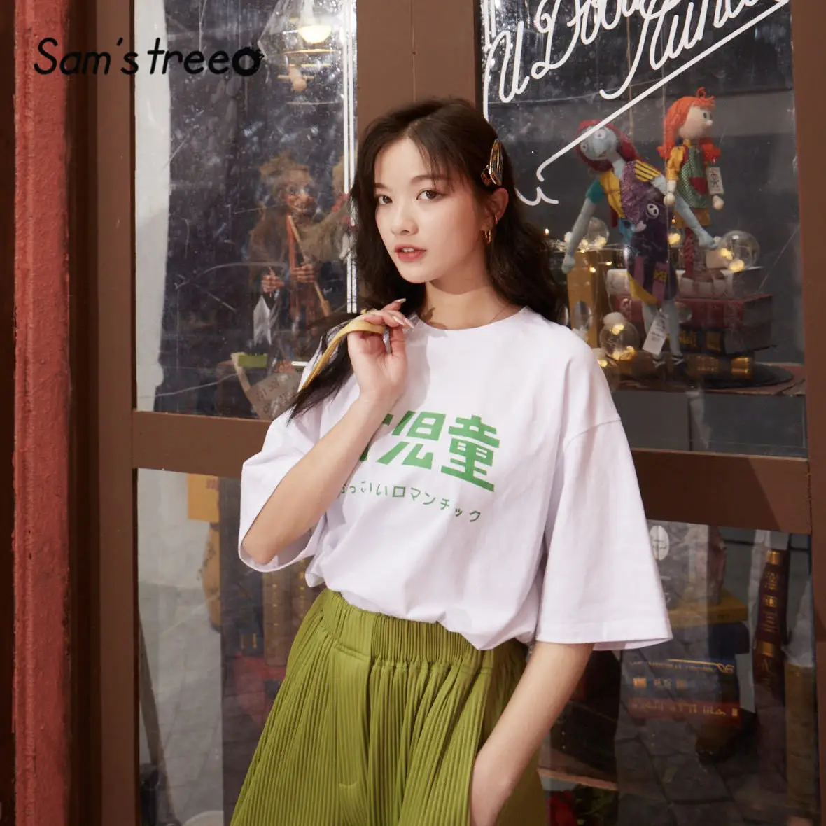 SAM'S TREE/белые повседневные женские футболки больших размеров с принтом героев мультфильмов, черные повседневные топы с коротким рукавом в Корейском стиле 2020