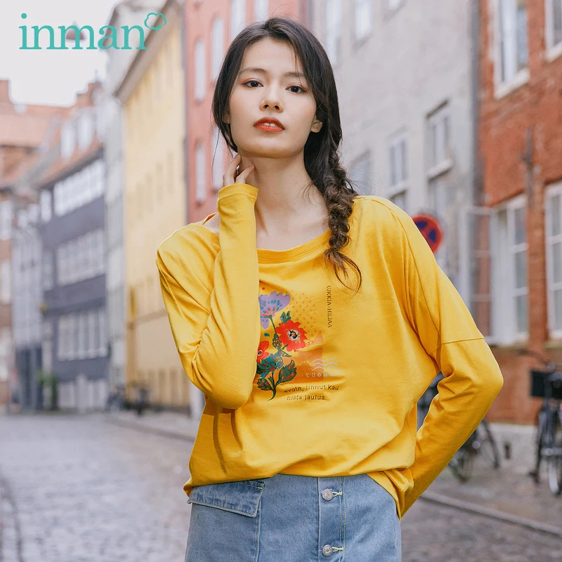 INMAN, весна 2020, Новое поступление, пуловер свободного кроя с круглым воротником и длинными рукавами, с принтом, подходит ко всему