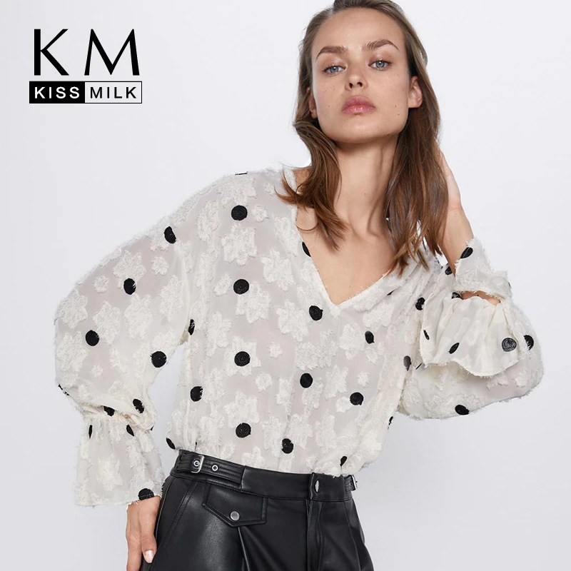 Kissmilk 2020 Новая мода весна волна точка размера плюс свободный тонкий белый досуг текстура женская рубашка