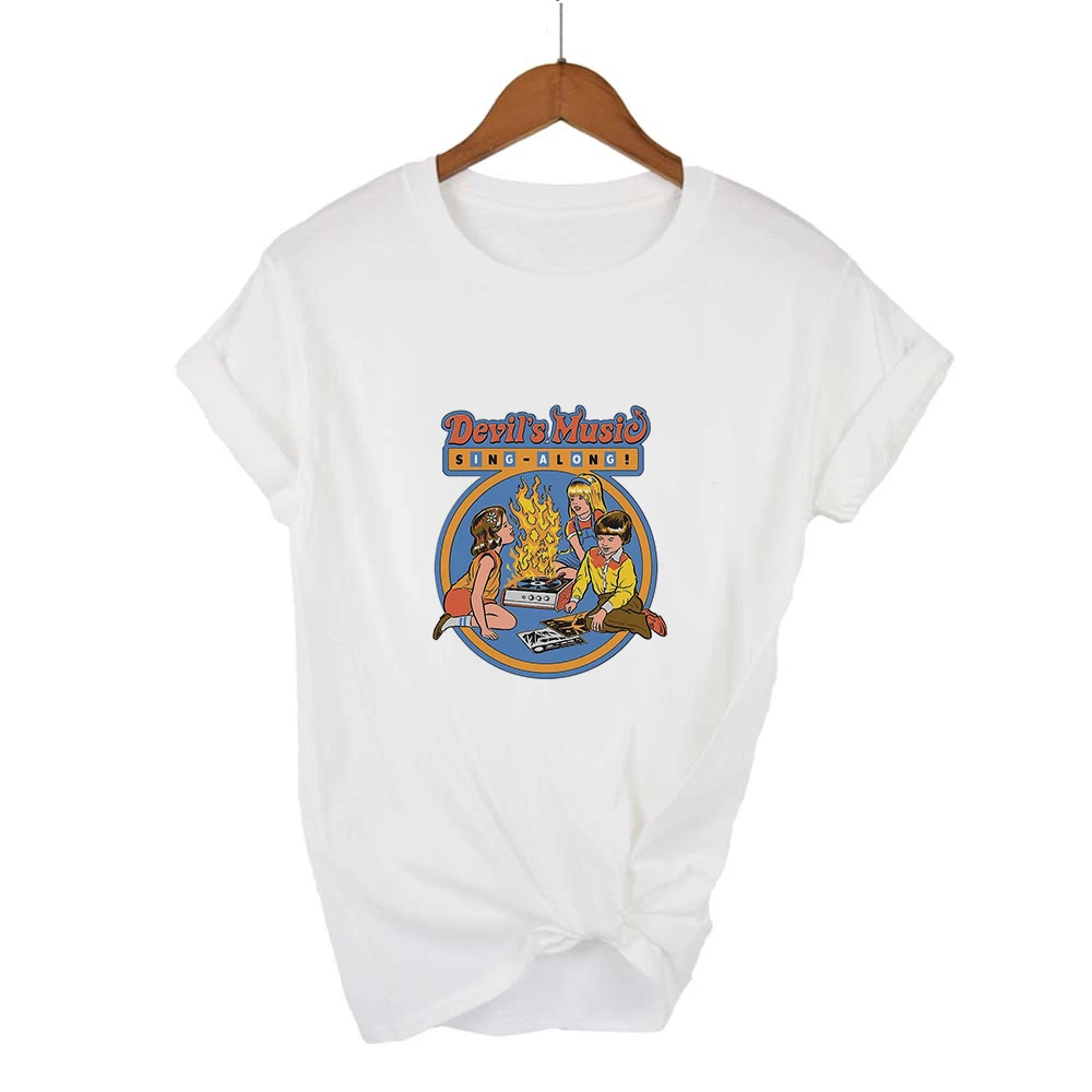 Luckyролл дьявол Минни Маус печати футболки женские повседневные футболки с круглым вырезом короткий рукав Харадзюку крутая футболка Женски...