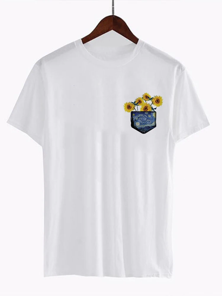 Забавная женская футболка Vogue летние топы Женская одежда Ван Гог с принтом масла круглый вырез плюс женская пижама женская футболка