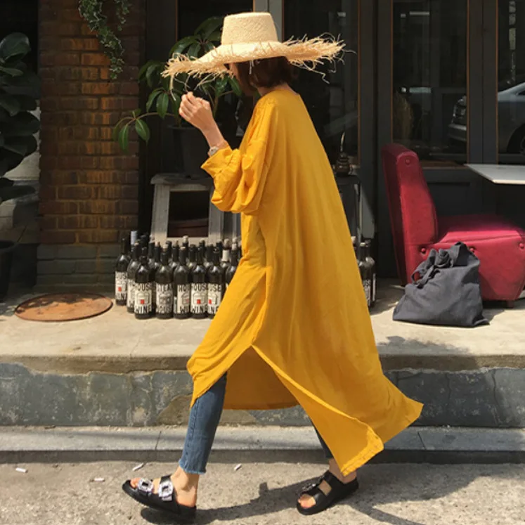 LANMREM/длинная Однотонная футболка ярких цветов с круглым вырезом и вентиляционным подолом; Коллекция 2020 года; Сезон весна-лето; Корейская Новая модная Солнцезащитная одежда; YJ157