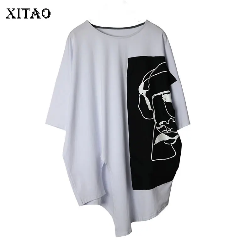 XITAO нерегулярные Для женщин футболка модный свитер для детей, со складками, с геометрическим узором, небольшие свежие Повседневное Стиль свободная футболка XJ4823