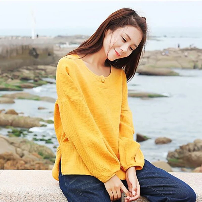 Для женщин однотонный верх плюс Размеры 5XL/6XL Весна с длинным рукавом из хлопка и льна с круглым вырезом Высокое качество Большой Размеры Camisa...