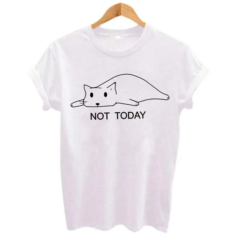 Не сегодня ленивый милый котенок Графический футболки для женщин полиэстер Fit футболки повседневные летние футболки и топы Черный Harajuku Kawaii футболки
