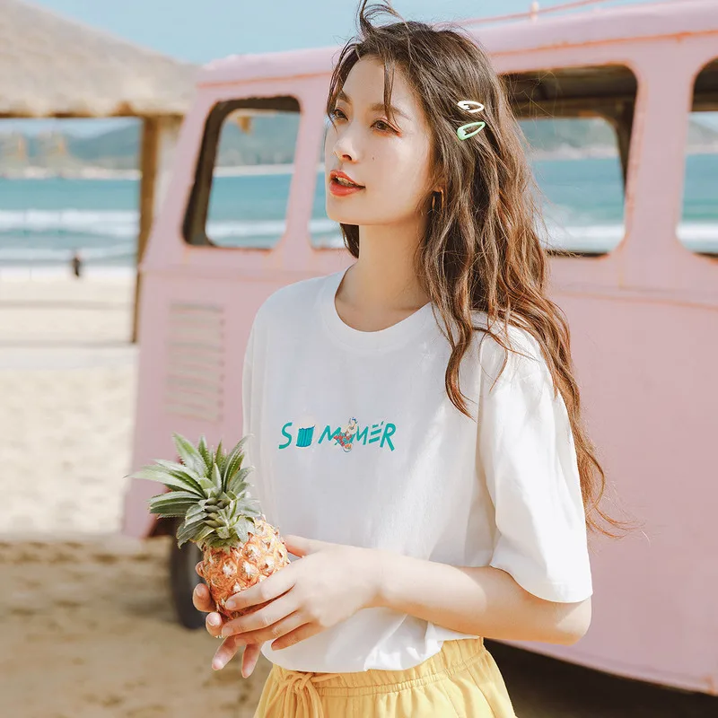 Футболка женская новая футболка женская 2018 vogue винтажные футболки хлопок женская с круглым вырезом короткий рукав KT21