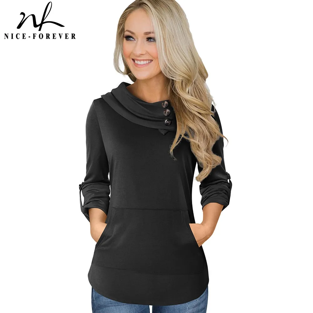 Nice-Forever повседневные однотонные футболки с пуговицами весенние женские футболки топы T046