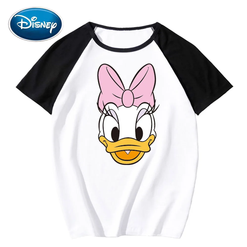 Стильный пуловер с круглым вырезом и принтом Дональда Дейзи Дака из мультфильма disney, футболка с коротким рукавом контрастного цвета, свобод...