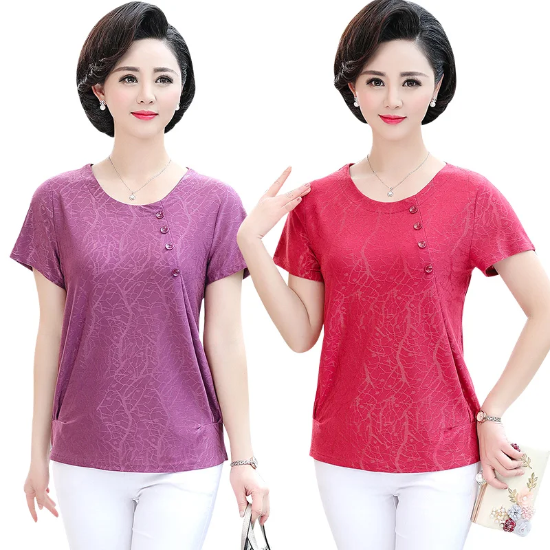С О-образным вырезом футболка с коротким рукавом для Для женщин для женщин средних лет одежда летние топы 5XL плюс Размеры Повседневное свободная нижняя рубашка