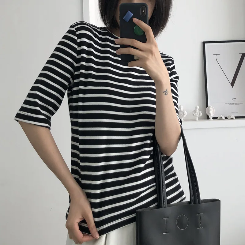 Johnature с коротким рукавом o-образным вырезом 2019 летние простые повседневные футболки Новый Винтажный стиль Одноцветный полосатый модные жен...