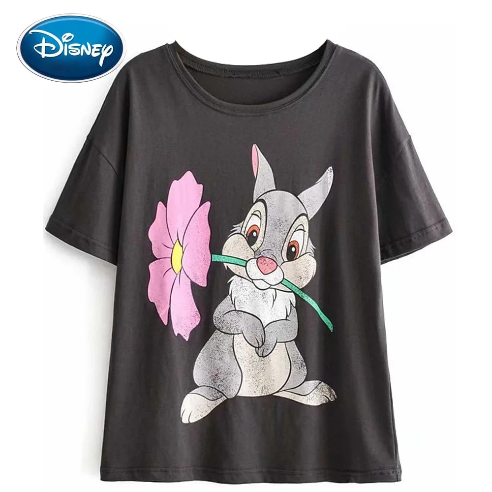 Стильная женская футболка с рисунком кролика Бэмби из мультфильма Дисней, пуловер с круглым вырезом, Повседневная Милая свободная хлопкова...