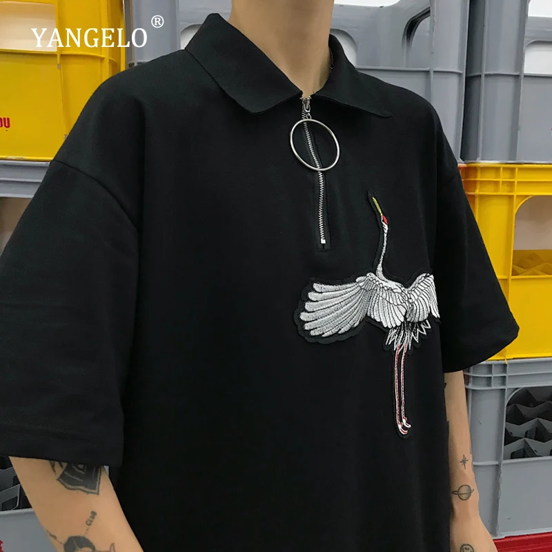 Harajuku унисекс футболка Летняя футболка Для женщин Винтаж кран вышитое кольцо на молнии Рубашка с короткими рукавами хлопковые топы рубашка ...