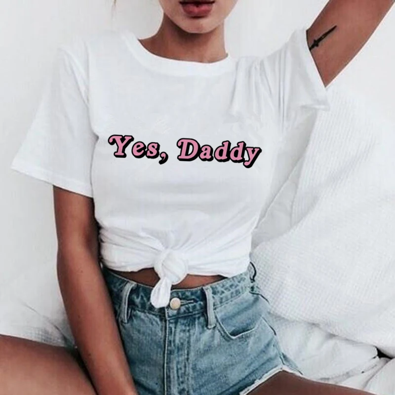 Yes Daddy Футболка женская для девочек Ullzang Футболка женская сатана это мой сахар папа 90s летние топы повседневная женская футболка с графикой