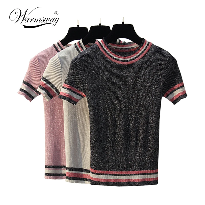 2019 новый летний люрекс футболка европейский стиль черная мишура футболка женская уличная одежда полосатые повседневные футболки B-054