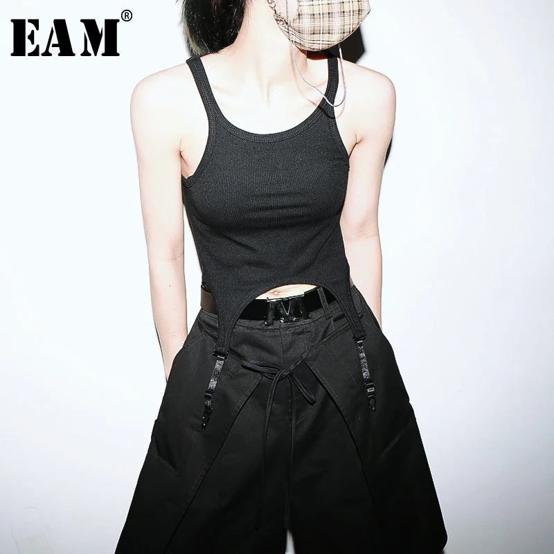 Женский топ EAM, белый короткий топ с пряжкой, Круглый ворот, без рукавов, на весну-лето 2020 1U3760